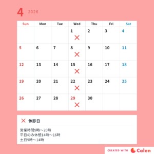 博多区板付のKARADA整骨院 診療日カレンダー
